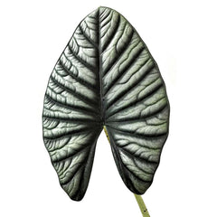 Alocasia nebula wirkt weicher und verhangener als schärfer silber gezeichnete Arten: bullate Blätter verbinden nebliges Silber, tiefes Grün und violette Blattunterseiten zu einer kompakten Rosette. Meist bleibt sie bei etwa 20–30 cm und eignet sich damit hervorragend für Vitrinen, Terrarien oder kleine Sammlerarrangements, in denen ihre feinen Details aus der Nähe wirken können.