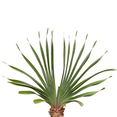 Boophone disticha ist alles andere als zurückhaltend: Aus einer großen freiliegenden Zwiebel wächst ein perfekt zweizeiliger Fächer aus graugrünen, gewellten Blättern, der die ganze Pflanze schon vor der Blüte wie eine lebende Skulptur wirken lässt. Unter passenden Bedingungen kann Boophone disticha zusätzlich einen kugeligen Blütenstand in Rosa bis Rot bilden und damit zu ihrer ohnehin dramatischen Form noch eine ganz andere Jahreswirkung hinzufügen.