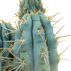Browningia hertlingiana ist ein bläulich getönter Säulenkaktus, der wegen seiner klaren vertikalen Form, ausgeprägten Rippen und skulpturalen Wirkung geschätzt wird, die mit dem Alter immer stärker wird. Schon als junge Pflanze wirkt sie deutlich wie eine architektonische Art und nicht wie bloßes Hintergrundgrün – genau deshalb passt sie so gut in helle minimalistische Räume oder trockene Pflanzensammlungen.