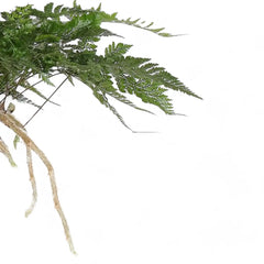 Davallia tyermannii, der Hasenpfotenfarn, wird fast genauso sehr wegen seiner weißen pelzigen Rhizome geschätzt wie wegen seiner fein geteilten grünen Wedel. Diese kriechenden Rhizome wachsen dekorativ über Topfränder oder Aufbauten und geben der Pflanze einen Charakter, den viele andere Farne nie erreichen, weshalb sie sich besonders gut für Ampeln, Aufbindungen und Arrangements eignet, bei denen auch die Basis sichtbar bleibt.