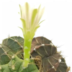 Gymnocalycium mihanovichii ist ein kompakter kugeliger Kaktus, der vor allem als Ausgangsart vieler gepfropfter „Mondkaktus“-Formen bekannt ist, aber auch in seiner natürlichen grünen Form viel Charakter hat. Glatte Rippen, kurze Dornen und gelegentlich gemusterte Färbungen machen ihn leicht erkennbar, während seine geringe Größe ihn ideal für helle Fensterbänke und Sammlerschalen macht.