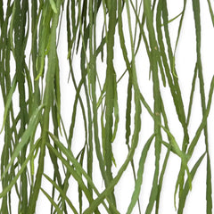 Kleine weiße bis blassrosa röhrenförmige Blüten können saisonal entlang der Triebe erscheinen, im Vordergrund steht aber der unkomplizierte, kaskadierende Wuchs, der gut zu Hängekörben und hohen Regalen passt. Lass den oberen Teil des Substrats vor dem nächsten Gießen abtrocknen, halte die Temperaturen mild bis warm und sorge für gute Luftbewegung, damit keine stehende Feuchtigkeit an die Wurzeln kommt. Weil der Kaktus keine Dornen hat und als ungiftig gilt, eignet er sich besonders gut für Haushalte mit Haustieren, die einen waldigen Hängekaktus ohne Stacheln möchten.