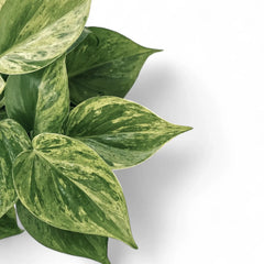 Philodendron hederaceum var. oxycardium variegata behält die weichen, matt herzförmigen Blätter und den flexiblen Rankenwuchs der grünen Art, ergänzt ihn aber um unregelmäßige cremefarbene bis blass limettengrüne Sektoren, die sich von Knoten zu Knoten verändern können. Die Pflanze hängt oder klettert problemlos, und die Internodien bleiben kompakt genug, damit sie sowohl in Hängeampeln als auch an Rankhilfen lange ordentlich wirkt. Unter gleichmäßigen Bedingungen können die Triebe über 2 m lang werden.