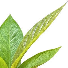 Anthurium jenmanii 'Green Jady' ist ein kräftiges nestartig wachsendes Anthurium mit glänzend smaragdgrünem Blattwerk und symmetrischer, brunnenartiger Form, die Innenraum-Arrangements sofort Struktur gibt. Dicke, leicht gewellte Blätter steigen aus einer selbsttragenden Mitte auf, wodurch die Pflanze üppiges Tropenvolumen bringt, ohne zu klettern, gestützt werden zu müssen oder ständig korrigiert zu werden.