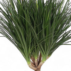 Dracaena draco ist ein langsam wachsender Drachenbaum, der wegen seines sich verdickenden Stamms, seiner blaugrünen schwertförmigen Blätter und seiner mit den Jahren immer skulpturaleren Silhouette geschätzt wird. Im Kübel bleibt er deutlich kleiner als alte Freilandexemplare, entwickelt aber denselben markanten Charakter mit Rosetten an den Enden kräftiger Verzweigungen.