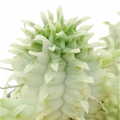Short, tubercled columns in pastel cream, green and pink resembling coral. Needs intense light, a gritty cactus mix, and very deliberate watering to keep the base firm.