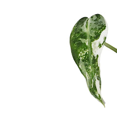 Bright indirect light is essential to support the pale tissue without scorching it, and the roots need a loose, very airy substrate that stays active rather than wet and stale. Let roughly the upper half of the mix dry before watering, keep it warm and steady, and avoid overfeeding because pale sectors show stress first. It is perfect when you want true white variegation from an Alocasia that still stays compact and easy to place instead of expanding into a large floor plant.