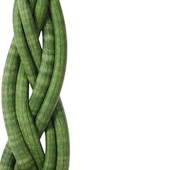 Dracaena angolensis 'Twister' is a nursery-trained cylindrical snake plant with several leaves braided into a spiral column. The grey-green leaves carry the same subtle banding and drought-storing structure as ordinary forms, but the look is more ornamental. Care remains simple: bright indirect light is ideal, though lower light is tolerated, and the substrate should be a fast-draining cactus mix that dries fully between waterings.