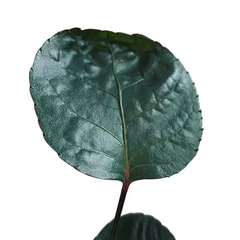 Polyscias scutellaria 'Fabian' grows as a compact indoor shrub with rounded, glossy, deep green leaves and rich purple undersides that add a darker second layer of colour. Its stout stems and naturally tidy outline give it a more architectural look than finer-leaved Polyscias forms, so it works well as a low-maintenance indoor tree for shelves, corners, or grouped tropical displays.