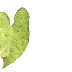 Syngonium podophyllum 'Freckles' carries a light green base overlaid with darker green spotting, giving the leaves a dappled, almost hand-splattered look without losing their tidy arrowhead form. As it matures it can trail or climb, with somewhat broader leaves on supported growth, while still staying more compact than many plain green podophyllum forms.