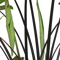 Alocasia zebrina 'Black Stem' combines elongated, arrow-shaped leaves with glossy petioles in deep maroon to near-black tones, giving this Philippine cultivar a much moodier look than the striped species form. It grows as an upright, clumping plant from a small corm and usually reaches about 40–60 cm indoors, though it can become larger in very warm, humid conditions.