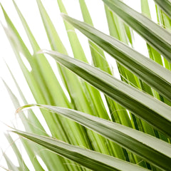 Chamaerops humilis brings a very different palm character from softer indoor species. Instead of feathery fronds and tropical softness, it forms tough fan-shaped leaves, fibrous trunks, and a compact clumping habit that reads distinctly Mediterranean. This makes it a strong choice for bright rooms, sheltered balconies, terraces, and sun-filled winter gardens where you want structure, durability, and a plant that can handle more direct light than many houseplant palms.