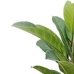 Ficus americana 'Tresor' keeps a narrower, more refined figure than bulkier indoor figs, using stiff glossy leaves on a tidy upright column. That controlled habit makes it a strong modern indoor tree for rooms where you want structure and greenery without a broad canopy taking over. It feels lighter and more tailored than many common Ficus options, while still keeping the dependable resilience people expect from the genus.