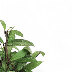 Mature plants can still deliver the species' familiar umbels in pink to maroon shades, so you are not sacrificing flower potential for leaf appeal. It suits brighter indoor positions best, where the leaves stay firm and the silver contrast remains visible, and its forgiving nature makes 'Speckled' one of the best choices when you want an easy Hoya that still feels decorative and a little more special than the plain form.