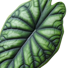 Alocasia baginda ‘Dragon Scale’ is grown for heavy texture rather than bright colour, with thick silvered-green leaves crossed by deep emerald veins and a raised surface that really does resemble layered scales. The plant stays compact and usually carries only a few leaves at a time, which makes each one feel deliberate and highly visible. New foliage opens softer and paler, then hardens into a firmer, darker finish as the relief becomes more pronounced.